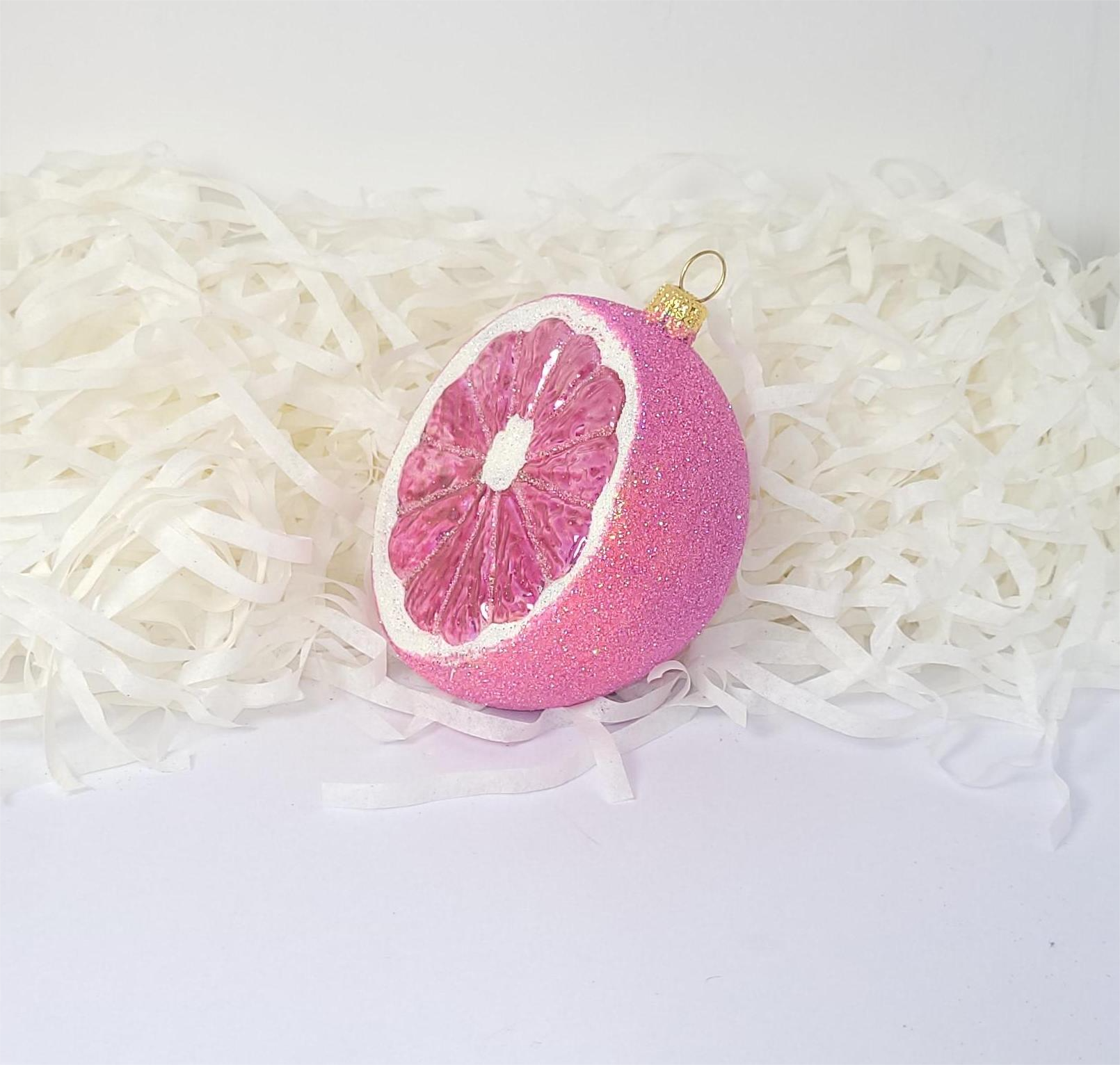 Bombka formowa w kształcie przekrojonej połówki różowego grejpfruta
