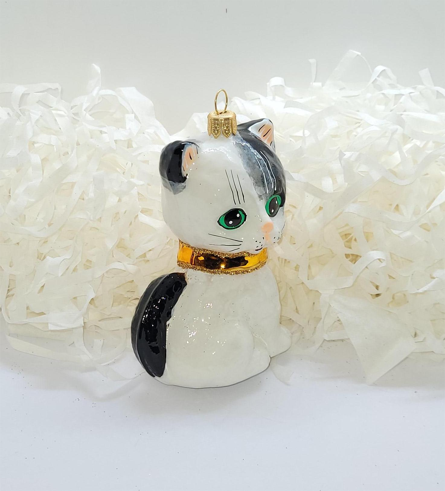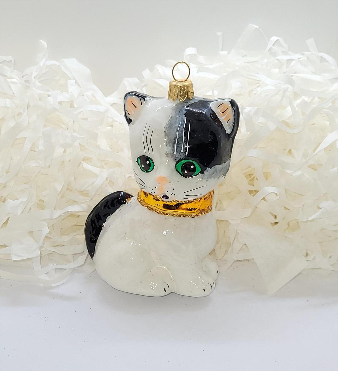 Bombka formowa w kształcie małego kotka w obroży. Umaszczenie kotków wzorowane na podopiecznych firmy 🙂