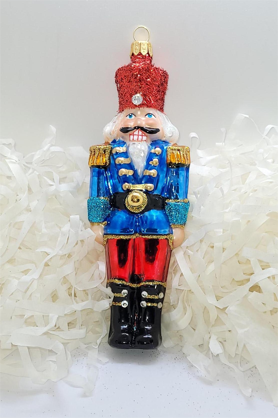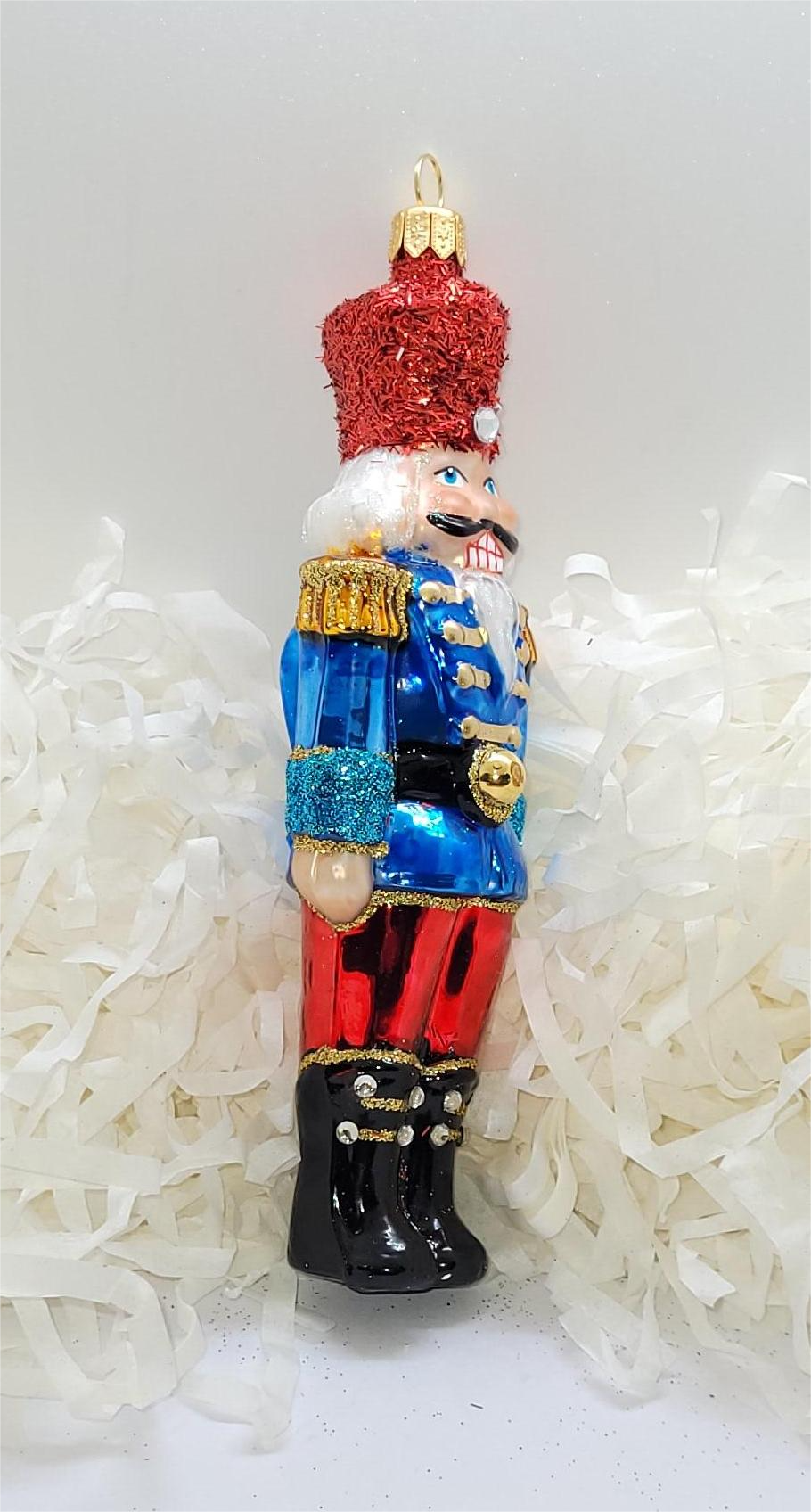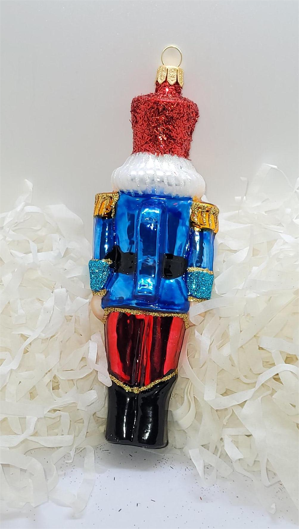 Bombka formowa w kształcie małego dziadka do orzechów w czapce w kolorze czerwonym