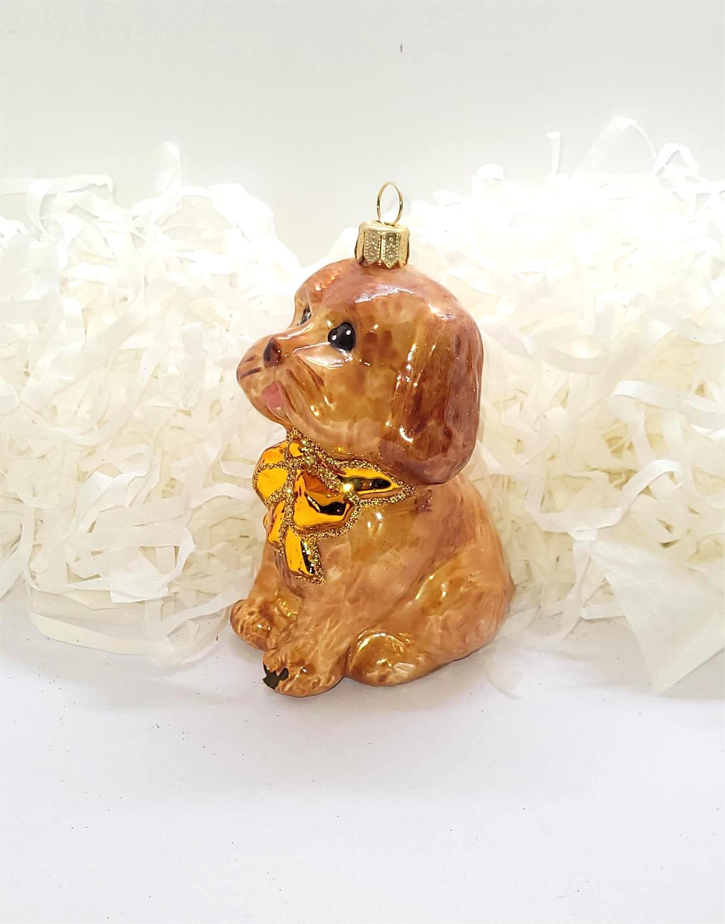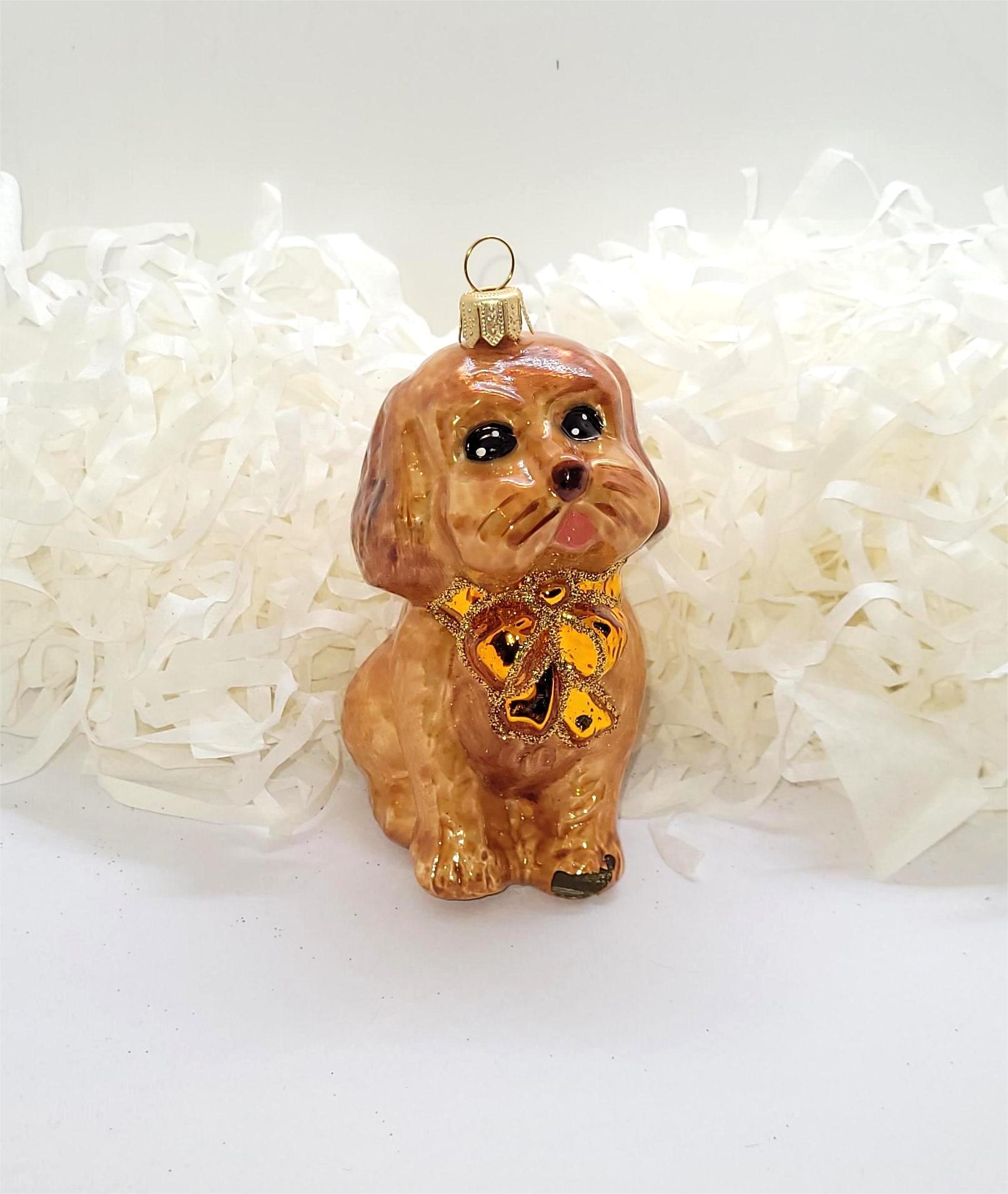 Piesek z kokardą – złotą